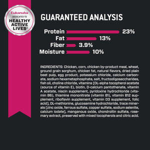 - 100% SATISFACTION GUARANTEE Eukanuba offers a 100% satisfaction guarantee for superior palatability, quality and consistency