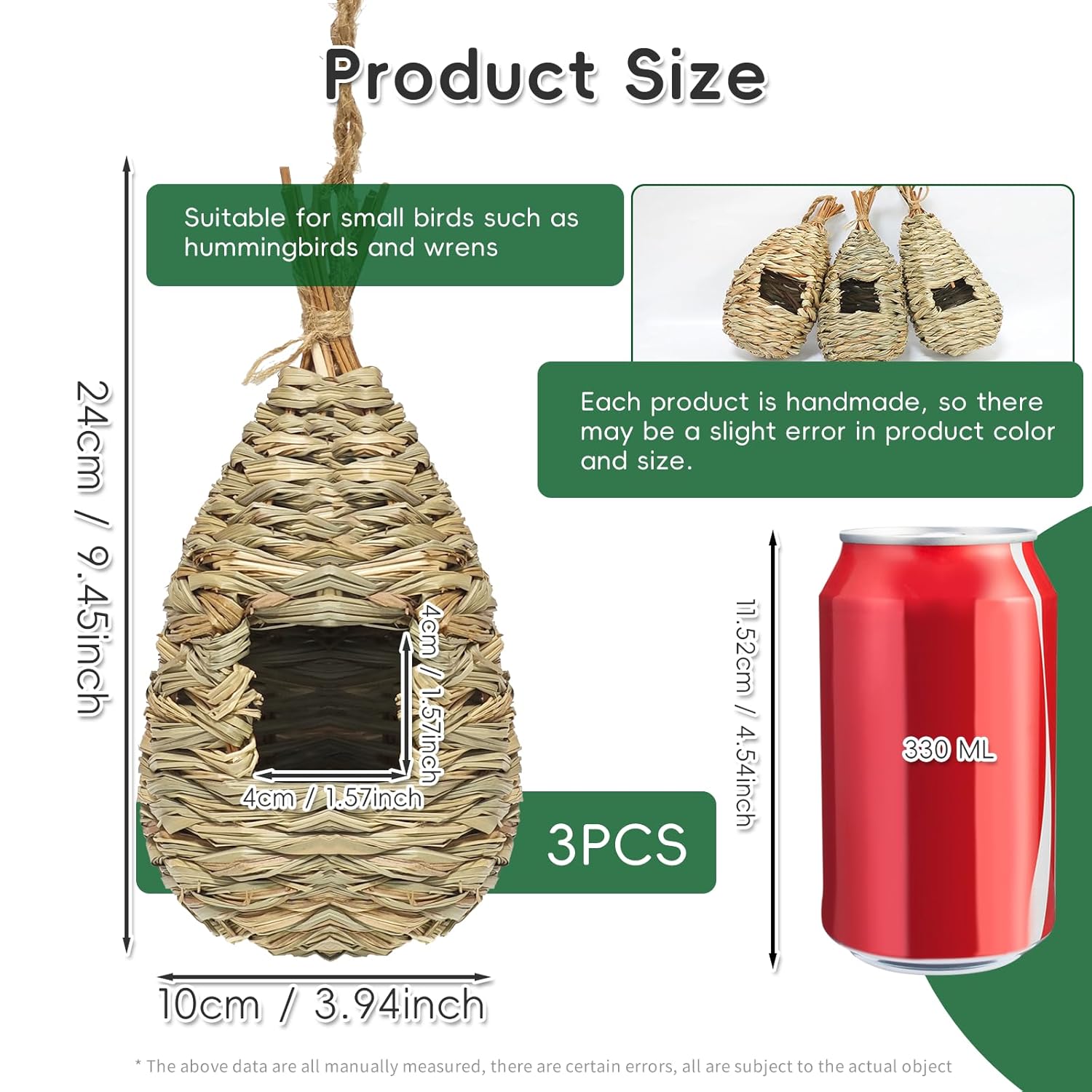 - HAND-KNITTED The bird nesting house is hand-woven from natural nesting materials, each one is unique. The fibers are tightly woven so that they don't come off easily. It provides them with the required ventilation and comfort