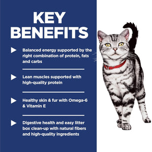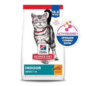 Details During your cat's adult years, you want to feed nutrition that supports everyday health and digestive. Hill's Science Diet Indoor Adult dry cat food is specially formulated to fuel the energy needs of cats with an indoor lifestyle during the prime of their life. Made for grown cats, this pet food made with natural ingredients uses DHA from fish oil to support brain health and eye development. Balanced minerals promote strong teeth and bones, while natural fibers promote healthy digestive for young cats, and easier litter box clean-up for you. Theres more to love with the new look of Science Diet. Some of our products also have new names, new kibble shapes & new formulas.
