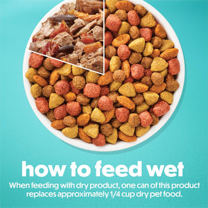 Details Your small dog will enjoy the big flavor adventures in this Purina Beneful Small Breed Wet Food Dog Gravy Variety Pack, IncrediBites With Real Beef, Chicken and Salmon. This canned dog food variety pack is specially crafted to delight little dogs. Each tender bite of this real meat dog food is paired with dog food gravy to satisfy their tiny taste buds and big cravings. Made to support strong muscles, this Beneful Incredibites for small dogs is packed with 23 essential vitamins and minerals, delivering 100 percent complete and balanced nutrition. This wet food for dogs is made with real vegetables and crafted to promote overall health. Purina Beneful Small Breed Wet Food Dog Gravy Variety Pack, IncrediBites With Real Beef, Chicken and Salmon is conveniently packaged in 3-ounce cansthe perfect meal portion for small dogs. This Purina Beneful wet dog food is proudly produced in Purina-owned U.S. facilities and contains no artificial colors, flavors, or preservatives.
