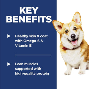 Details Product DescriptionIf your little dog has a taste for variety, treat him or her to the savory lamb flavor of Hill's Science Diet Small Bites Adult dry dog food. Packed with omega-6s & vitamin E to give your small canine healthy skin and a shiny fur coat, this premium dry food for adult miniature dogs also provides quality protein to help maintain muscle. The small kibble is perfect for small and toy breeds, and since adult dogs need a strong gut, natural fibers help promote healthy digestive. This adult dog food made with natural ingredients is specially formulated with decades of cutting-edge research to be a great-tasting meal your grown dog can truly enjoy. Theres more to love with the new look of Science Diet. Some of our products also have new names, new kibble shapes & new formulas.From the ManufacturerHills Pet Nutritions Mission To help enrich and lengthen the special relationships between people and their pets.More than 220 veterinarians, food scientists, technicians and Ph.D. nutritionists at Hill's develop all of Hill's pet foods to meet the needs of your pets. Hills only accepts ingredients from suppliers whose facilities meet stringent quality standards and who are approved by Hill's. Not only is each ingredient examined to ensure its safety, we also analyze each product's ingredient profile for essential nutrients to ensure your pet gets the stringent, precise formulation they need.Hills uses only high-quality ingredients including real chicken, lamb or salmon protein. Hills dry pet foods have quality protein as the first ingredient and provide clinically proven antioxidant benefits. Plus, theyre made with natural ingredients (plus vitamins, minerals & amino acids) and never contain artificial colors, flavors, preservatives or chicken by-product meal.Hills Food, Shelter & Love program donates food to shelters across the country, providing the proper nutrition that helps pets find their way to loving homes. With every purchase of Science Diet you help feed over 100,000 homeless pets every day, 365 days a year.