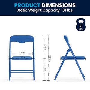 - NO ASSEMBLY REQUIRED Table measures 24" W x 24" D x 20.25" H and can hold up to 70 lbs. of static weight and each chair measures 12.5" W x 13.5" D x 21.25" H with a 10.5" W x 10.5" D x 12.25" H seat size, 12.5" W x 10" H back size, and 13" W x 1.25" D x 21.25" H folded size and can hold up to 81 lbs. of static weight