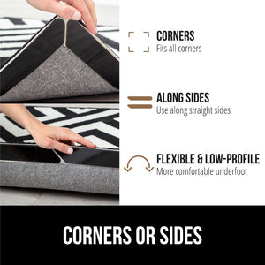 • No Curling on Corners or Sides innovative design seamlessly attaches to the underside of rug corners to help prevent rugs from curling upwards away from the floor; grippers can be used under the straight sides of rugs as well