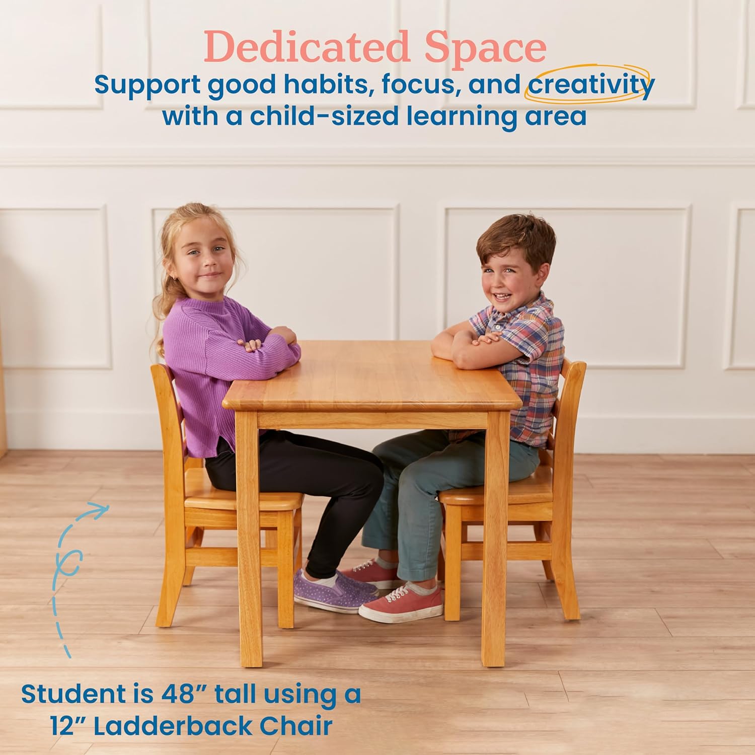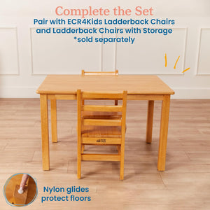- Hardwood Table Provide a dedicated space for educational activities in the home or early childhood setting; pair with Ladderback Chairs, seat height is dependent on the childs size, sold separately