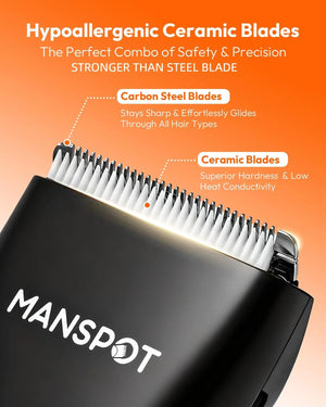 MANSPOT Manscape Groin & Body Hair Trimmer for Men, Electric Ball Pubic Trimmer Shaver,Manscape Kit with 4 Guard,Replaceable Ceramic Blade Heads,Waterproof Wet/Dry Shaver,90 Minutes Shaving