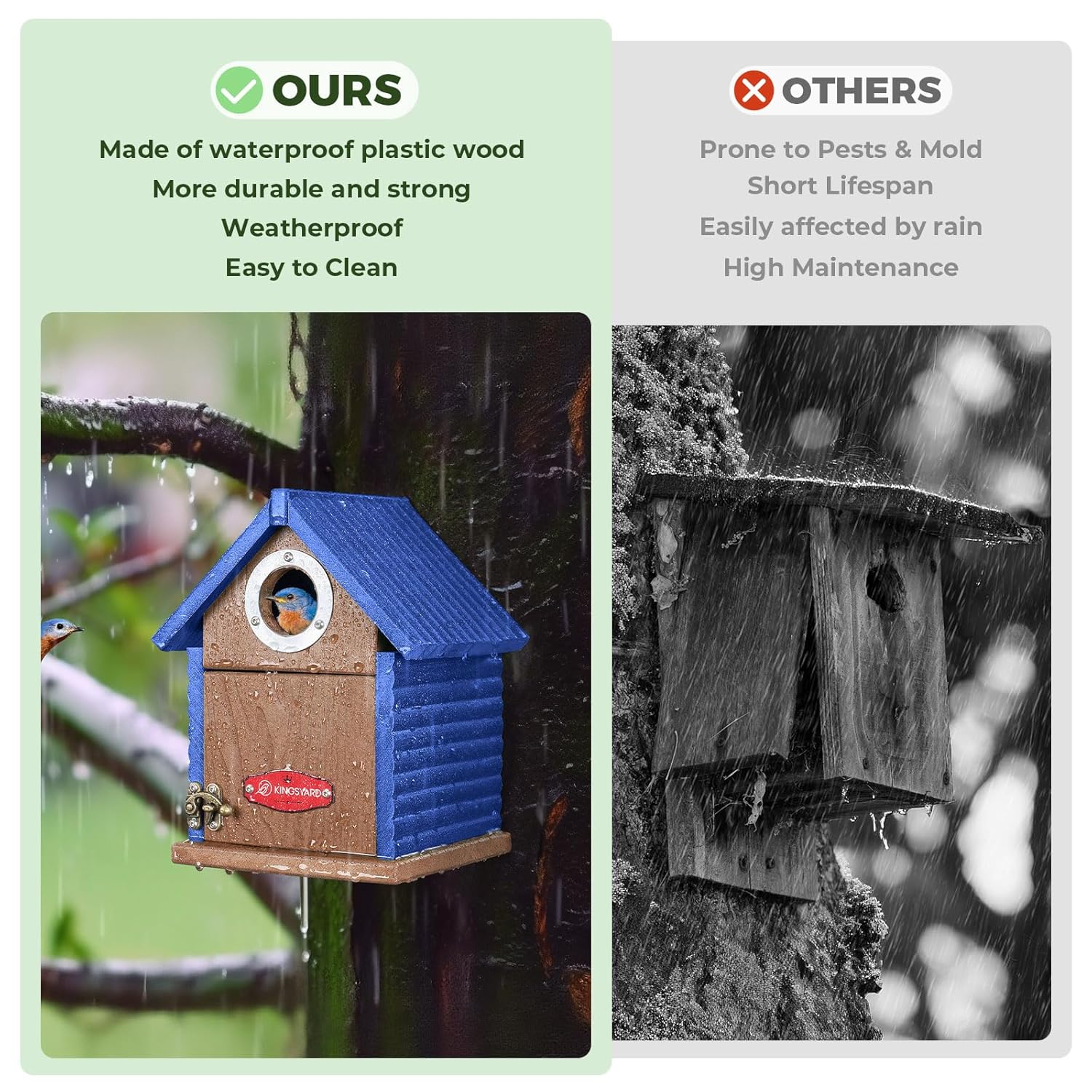 Kingsyard Recycled Plastic Bird House for Outdoors - Weatherproof Nesting Box with Clear View Panel & Predator Guard for Bluebird Wren Swallow Finch, Blue
