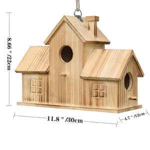 STARSWR Bird Houses for Outside,Outdoor 3 Hole Bird House Room for 3 Bird Families Bluebird Finch Cardinals Wooden Hanging Birdhouse for Garden