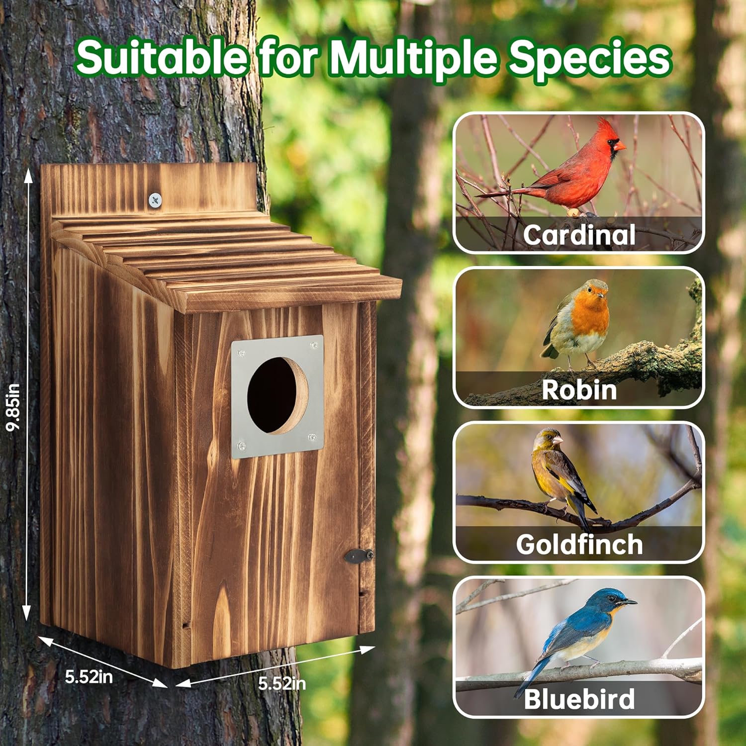 Bird Houses for Outside with Metal Predator Guard for Bluebird Wren Swallow Finch, Carbonized Wooden Nesting Boxes for Outdoor, Sturdy Bird House,Easy to Clean